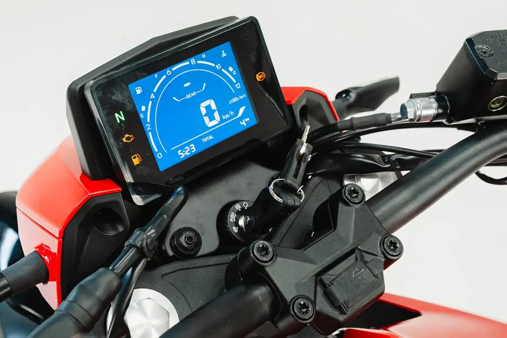 Mas, a moto chega em três cores – vermelho, azul e preto – e já está disponível nas concessionárias. Mas o que realmente impressiona é o pacote de tecnologia e desempenho pelo preço que ela entrega!